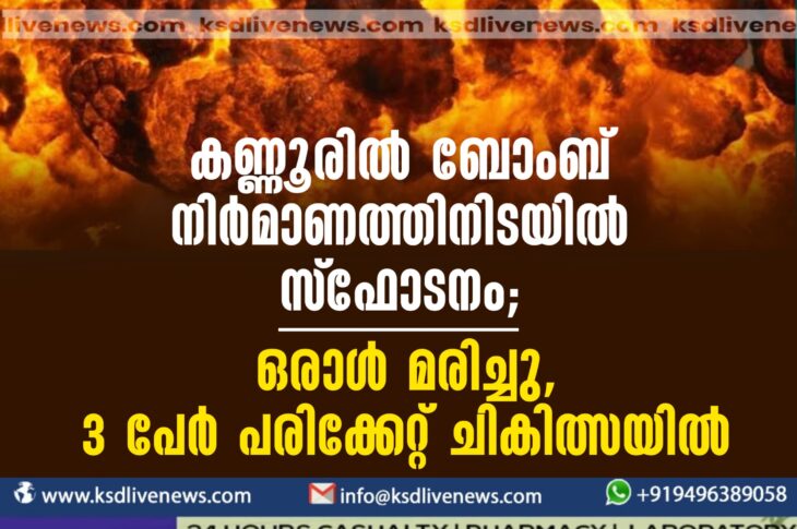കണ്ണൂർ കണ്ണൂരില് ബോംബ് നിര്മാണത്തിനിടയില് സ്ഫോടനം; ഒരാള് മരിച്ചു, 3 പേര് പരിക്കേറ്റ് ചികിത്സയില്April 5, 2024