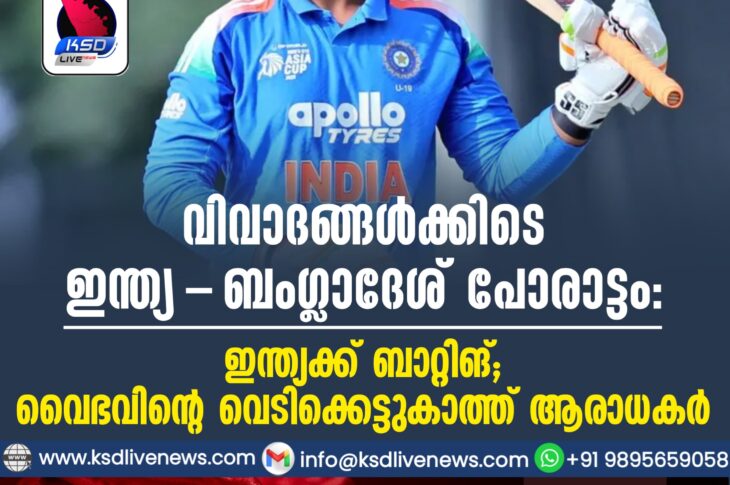 കായികംവിദേശം വിവാദങ്ങൾക്കിടെ ഇന്ത്യ-ബംഗ്ലാദേശ് പോരാട്ടം: ഇന്ത്യക്ക് ബാറ്റിങ്; വൈഭവിന്റെ വെടിക്കെട്ടുകാത്ത് ആരാധകർJanuary 17, 2026