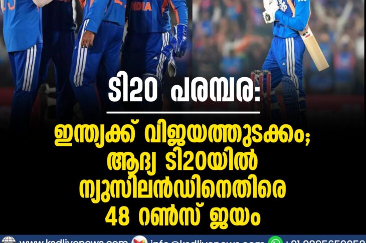 കായികം ടി20 പരമ്പര: ഇന്ത്യക്ക് വിജയത്തുടക്കം; ആദ്യ ടി20യിൽ ന്യുസിലൻഡിനെതിരെ 48 റൺസ് ജയംJanuary 22, 2026