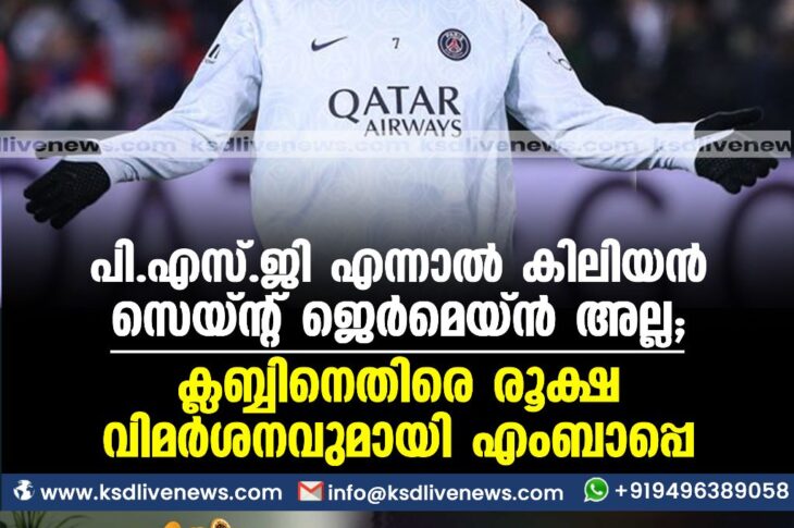 കായികം പി.എസ്.ജി എന്നാൽ കിലിയൻ സെയ്ന്റ് ജെർമെയ്ൻ അല്ല, ക്ലബ്ബിനെതിരെ രൂക്ഷ വിമർശനവുമായി എംബാപ്പെApril 7, 2023