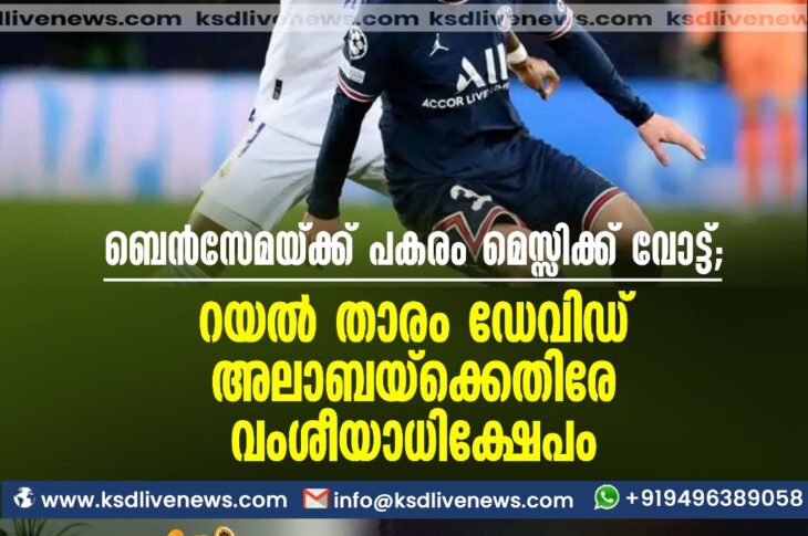 കായികം ബെന്സേമയ്ക്ക് പകരം മെസ്സിക്ക് വോട്ട്; റയല് താരം ഡേവിഡ് അലാബയ്ക്കെതിരേ വംശീയാധിക്ഷേപംMarch 1, 2023