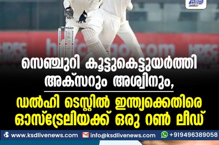കായികം സെഞ്ചുറി കൂട്ടുകെട്ടുയര്ത്തി അക്സറും അശ്വിനും, ഡല്ഹി ടെസ്റ്റില് ഇന്ത്യക്കെതിരെ ഓസ്ട്രേലിയക്ക് ഒരു റണ് ലീഡ്February 18, 2023
