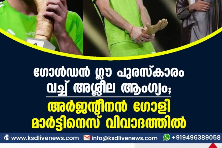 കായികം ഗോള്ഡന് ഗ്ലൗ പുരസ്കാരം വച്ച് അശ്ലീല ആംഗ്യം; അര്ജന്റീനന് ഗോളി മാര്ട്ടിനെസ് വിവാദത്തില്December 19, 2022