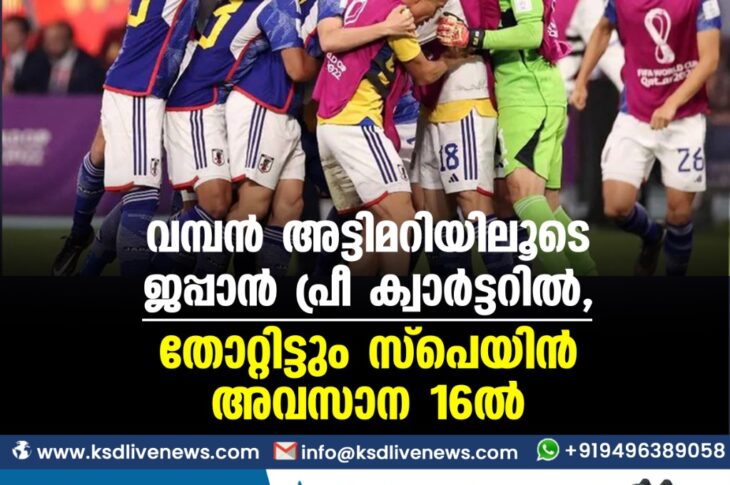 കായികം വമ്പന് അട്ടിമറിയിലൂടെ ജപ്പാന് പ്രീ ക്വാര്ട്ടറില്, തോറ്റിട്ടും സ്പെയിന് അവസാന 16-ല്December 2, 2022