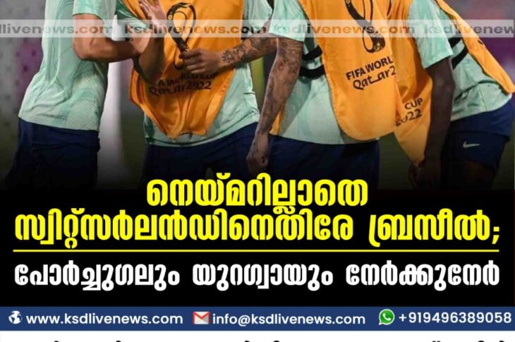 കായികം നെയ്മറില്ലാതെ സ്വിറ്റ്സര്ലന്ഡിനെതിരേ ബ്രസീല്; പോര്ച്ചുഗലും യുറഗ്വായും നേര്ക്കുനേര്,November 28, 2022