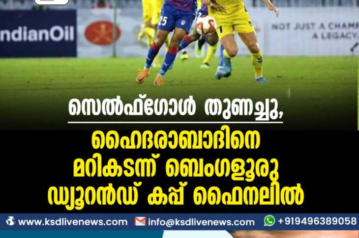 കായികം സെല്ഫ്ഗോള് തുണച്ചു, ഹൈദരാബാദിനെ മറികടന്ന് ബെംഗളൂരു ഡ്യൂറന്ഡ് കപ്പ് ഫൈനലില്September 15, 2022