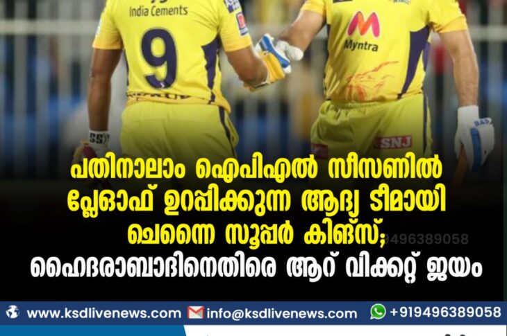 കായികം പതിനാലാം ഐപിഎല് സീസണില് പ്ലേഓഫ് ഉറപ്പിക്കുന്ന ആദ്യ ടീമായി ചെന്നൈ സൂപ്പര് കിങ്സ്;ഹൈദരാബാദിനെതിരെ ആറ് വിക്കറ്റ് ജയംOctober 1, 2021