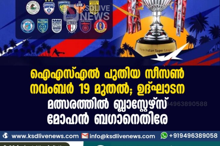 കായികം ഐഎസ്എല് പുതിയ സീസണ് നവംബര് 19 മുതല്; ഉദ്ഘാടന മത്സരത്തില് ബ്ലാസ്റ്റേഴ്സ് മോഹന് ബഗാനെതിരേSeptember 13, 2021