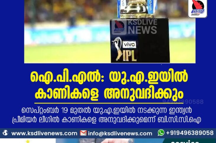 കായികം സെപ്റ്റംബർ 19 മുതൽ യു.എ.ഇയിൽ നടക്കുന്ന ഇന്ത്യൻ പ്രീമിയർ ലീഗിൽ കാണികളെ അനുവദിക്കുമെന്ന് ബി.സി.സി.ഐSeptember 15, 2021