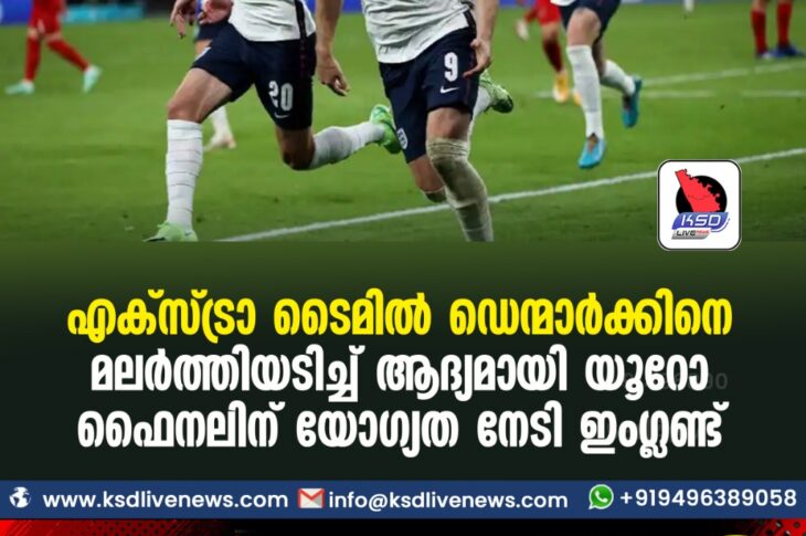 കായികം എക്സ്ട്രാ ടൈമില് ഡെന്മാര്ക്കിനെ മലര്ത്തിയടിച്ച് ആദ്യമായി യൂറോ ഫൈനലിന് യോഗ്യത നേടി ഇംഗ്ലണ്ട്July 8, 2021