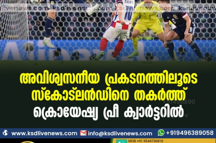 കായികം അവിശ്വസനീയ പ്രകടനത്തിലൂടെ സ്കോട്ലന്ഡിനെ തകര്ത്ത് ക്രൊയേഷ്യ പ്രീ ക്വാര്ട്ടറില്June 23, 2021
