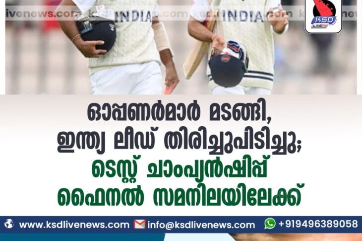 കായികം ഓപ്പണര്മാര് മടങ്ങി, ഇന്ത്യ ലീഡ് തിരിച്ചുപിടിച്ചു; ടെസ്റ്റ് ചാംപ്യന്ഷിപ്പ് ഫൈനല് സമനിലയിലേക്ക്June 23, 2021