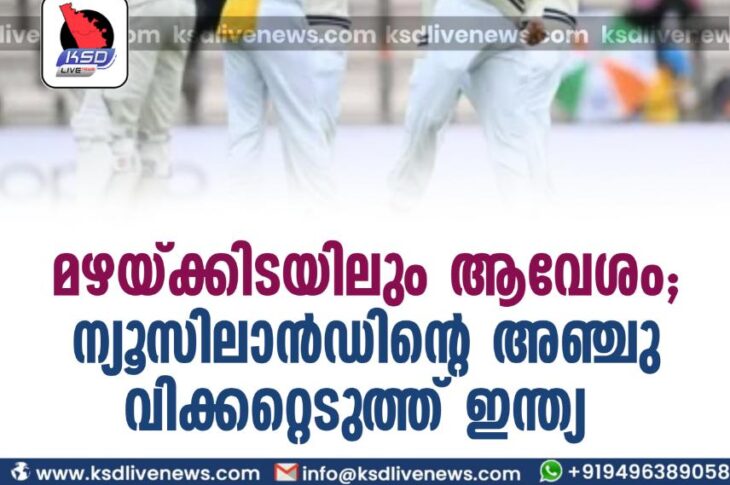 മഴയ്ക്കിടയിലും ആവേശം; ന്യൂസിലാൻഡിന്റെ അഞ്ചു വിക്കറ്റെടുത്ത് ഇന്ത്യ