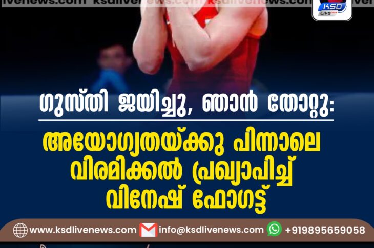 കായികം ഗുസ്തി ജയിച്ചു, ഞാൻ തോറ്റു’; അയോഗ്യതയ്ക്കു പിന്നാലെ വിരമിക്കല് പ്രഖ്യാപിച്ച് വിനേഷ് ഫോഗട്ട്August 8, 2024