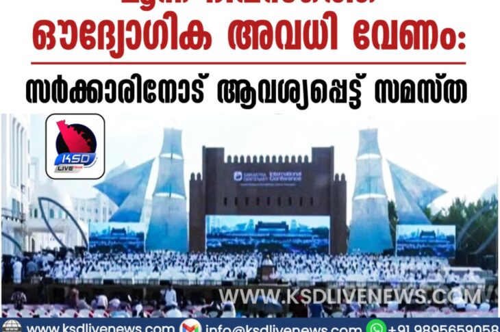 കാസർഗോഡ് പെരുന്നാളുകൾക്ക് മൂന്ന് ദിവസത്തെ ഔദ്യോഗിക അവധി വേണം; സർക്കാരിനോട് ആവശ്യപ്പെട്ട് സമസ്തFebruary 9, 2026