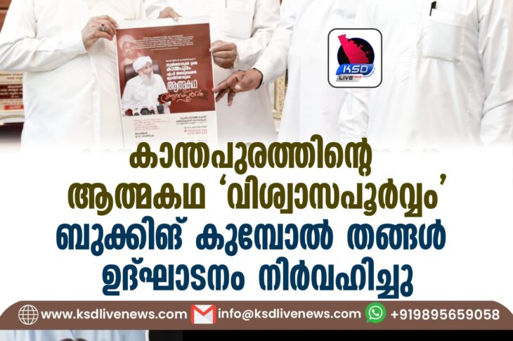 കാസർഗോഡ് കാന്തപുരത്തിന്റെ ആത്മകഥ വിശ്വാസപൂർവ്വം ബുക്കിങ് കുമ്പോൽ തങ്ങൾ ഉദ്ഘാടനം നിർവഹിച്ചുMay 22, 2024