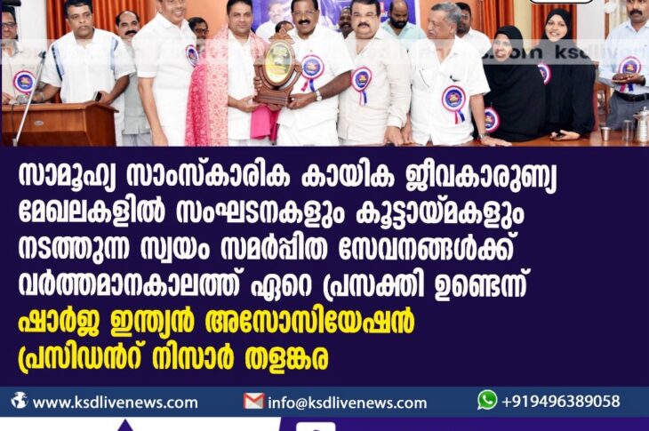 കാസർഗോഡ് സാമൂഹ്യ സാംസ്കാരിക കായിക ജീവകാരുണ്യ മേഖലകളിൽ സംഘടനകളും കൂട്ടായ്മകളും നടത്തുന്ന സ്വയം സമർപ്പിത സേവനങ്ങൾക്ക് വർത്തമാനകാലത്ത് ഏറെ പ്രസക്തി ഉണ്ടെന്ന് ഷാർജ ഇന്ത്യൻ അസോസിയേഷൻ പ്രസിഡൻറ് നിസാർ തളങ്കര.January 7, 2024