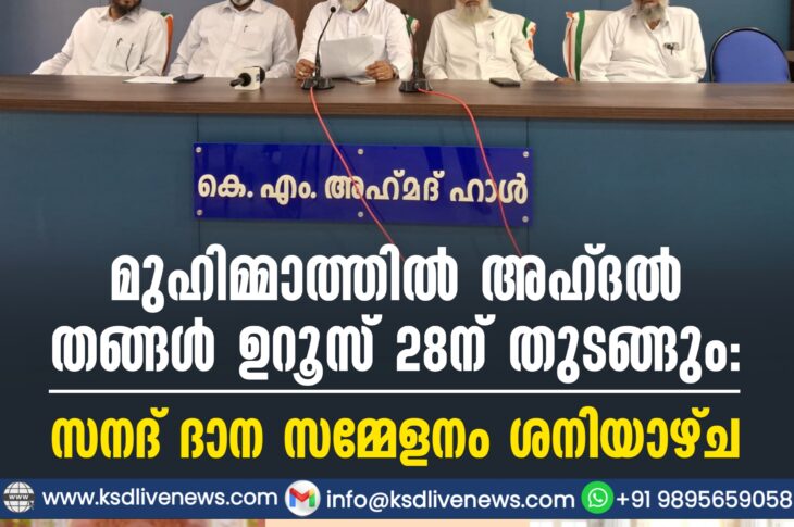 കാസർഗോഡ് മുഹിമ്മാത്തില് അഹ്ദൽ തങ്ങള് ഉറൂസ് 28ന് തുടങ്ങും:സനദ് ദാന സമ്മേളനം ശനിയാഴ്ചJanuary 27, 2026