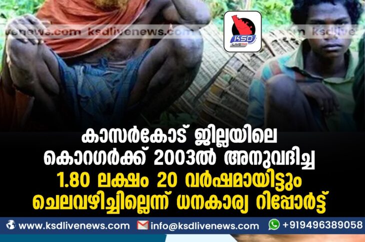 കാസർഗോഡ് കാസർകോട് ജില്ലയിലെ കൊറഗര്ക്ക് 2003ല് അനുവദിച്ച 1.80 ലക്ഷം 20 വര്ഷമായിട്ടും ചെലവഴിച്ചില്ലെന്ന് ധനകാര്യ റിപ്പോര്ട്ട്September 29, 2023