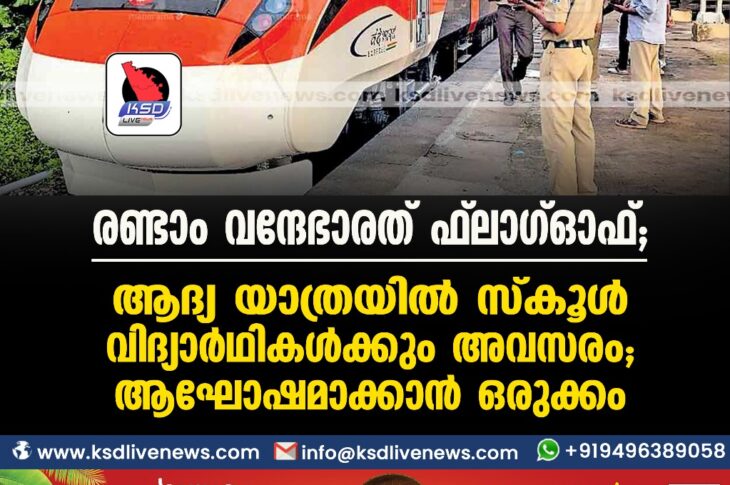 കാസർഗോഡ് രണ്ടാം വന്ദേഭാരത് ഫ്ലാഗ്ഓഫ്; ആദ്യ യാത്രയിൽ സ്കൂൾ വിദ്യാർഥികൾക്കും അവസരം: ആഘോഷമാക്കാൻ ഒരുക്കംSeptember 23, 2023