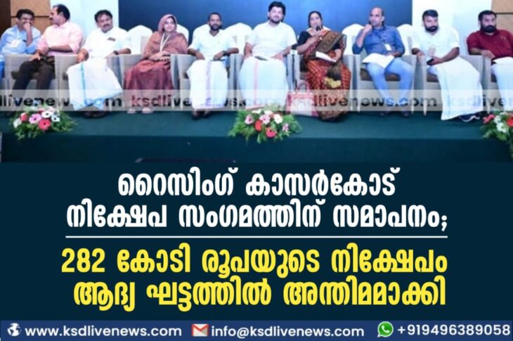 കാസർഗോഡ് റൈസിംഗ് കാസര്കോട് നിക്ഷേപ സംഗമത്തിന് സമാപനം; 282 കോടി രൂപയുടെ നിക്ഷേപം ആദ്യ ഘട്ടത്തില് അന്തിമമാക്കിSeptember 20, 2023