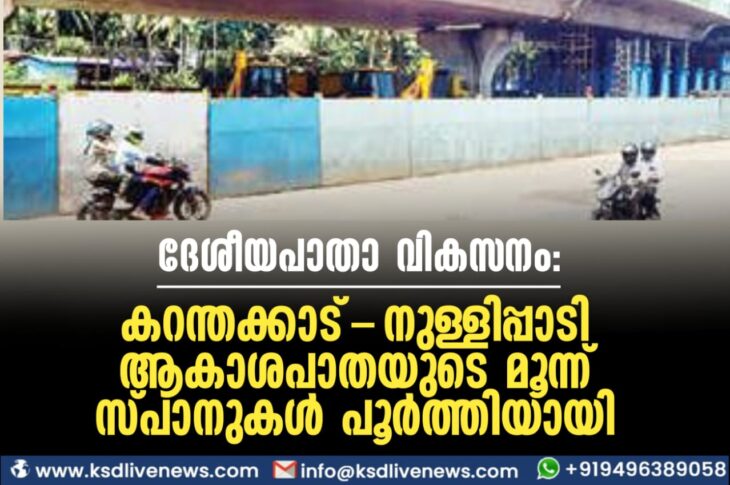 കാസർഗോഡ് ദേശീയപാതാ വികസനം: കറന്തക്കാട്-നുള്ളിപ്പാടി ആകാശപാതയുടെ മൂന്ന് സ്പാനുകൾ പൂർത്തിയായിAugust 21, 2023