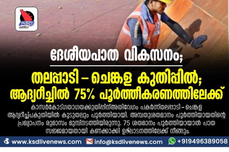 കാസർഗോഡ് ദേശീയപാത വികസനം; തലപ്പാടി-ചെങ്കള കുതിപ്പിൽ; ആദ്യറീച്ചിൽ 75 % പൂർത്തീകരണത്തിലേക്ക്August 22, 2023
