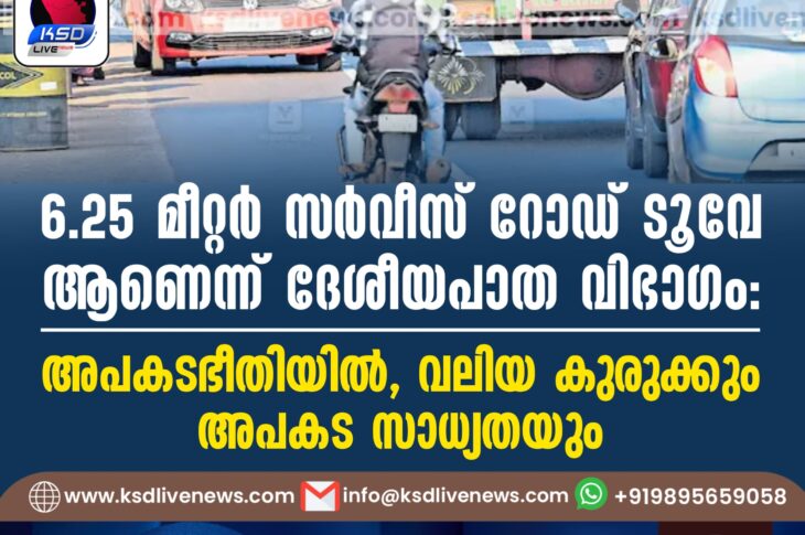 കാസർഗോഡ് 6.25 മീറ്റർ സർവീസ് റോഡ് ടൂവേ ആണെന്ന് ദേശീയപാത വിഭാഗം: അപകടഭീതിയിൽ, വലിയ കുരുക്കും അപകട സാധ്യതയുംNovember 8, 2025