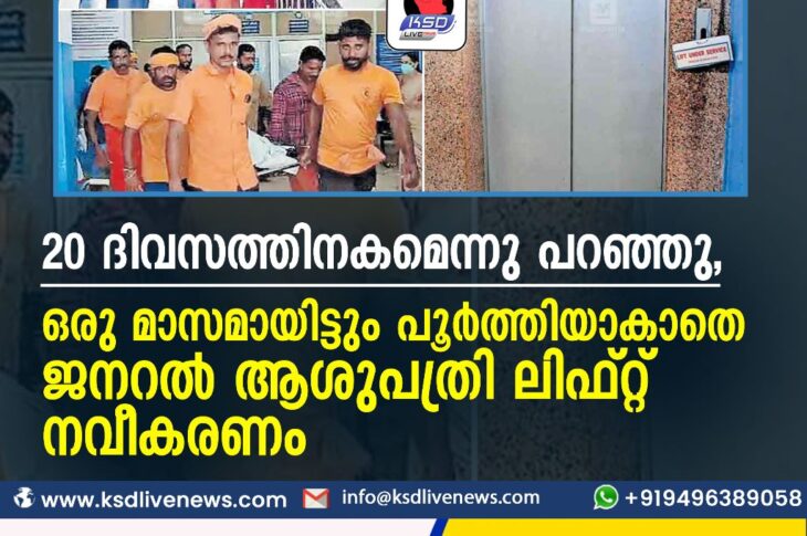 കാസർഗോഡ് 20 ദിവസത്തിനകമെന്നു പറഞ്ഞു, ഒരു മാസമായിട്ടും പൂർത്തിയാകാതെ ജനറൽ ആശുപത്രി ലിഫ്റ്റ് നവീകരണംJuly 8, 2023