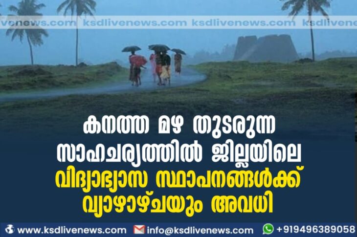 കാസർഗോഡ് കനത്ത മഴ തുടരുന്ന സാഹചര്യത്തില് ജില്ലയിലെ വിദ്യാഭ്യാസ സ്ഥാപനങ്ങള്ക്ക് വ്യാഴാഴ്ചയും അവധിJuly 5, 2023