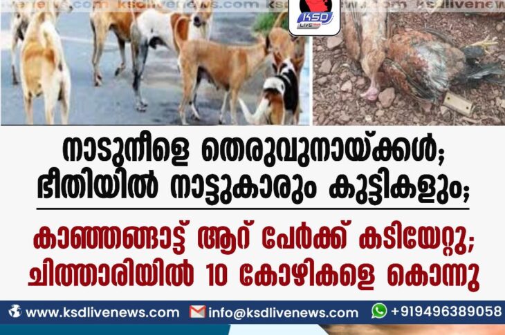 കാസർഗോഡ് നാടുനീളെ തെരുവുനായ്ക്കൾ; ഭീതിയിൽ നാട്ടുകാരും കുട്ടികളും; കാഞ്ഞങ്ങാട്ട് ആറ് പേർക്ക് കടിയേറ്റു; ചിത്താരിയിൽ 10 കോഴികളെ കൊന്നുJune 21, 2023