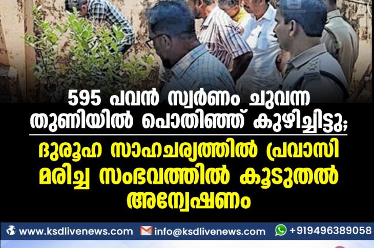 കാസർഗോഡ് 595 പവൻ സ്വർണം ചുവന്ന തുണിയിൽ പൊതിഞ്ഞ് കുഴിച്ചിട്ടു? ദുരൂഹ സാഹചര്യത്തിൽ പ്രവാസി മരിച്ച സംഭവത്തിൽ കൂടുതൽ അന്വേഷണംMay 24, 2023