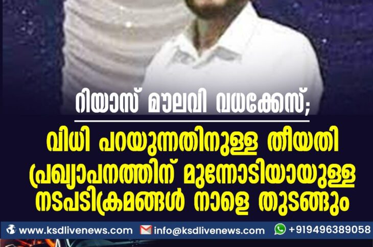 കാസർഗോഡ് റിയാസ് മൗലവി വധക്കേസ്; വിധി പറയുന്നതിനുള്ള തീയതി പ്രഖ്യാപനത്തിന് മുന്നോടിയായുള്ള നടപടിക്രമങ്ങള് 24ന് തുടങ്ങുംMarch 23, 2023