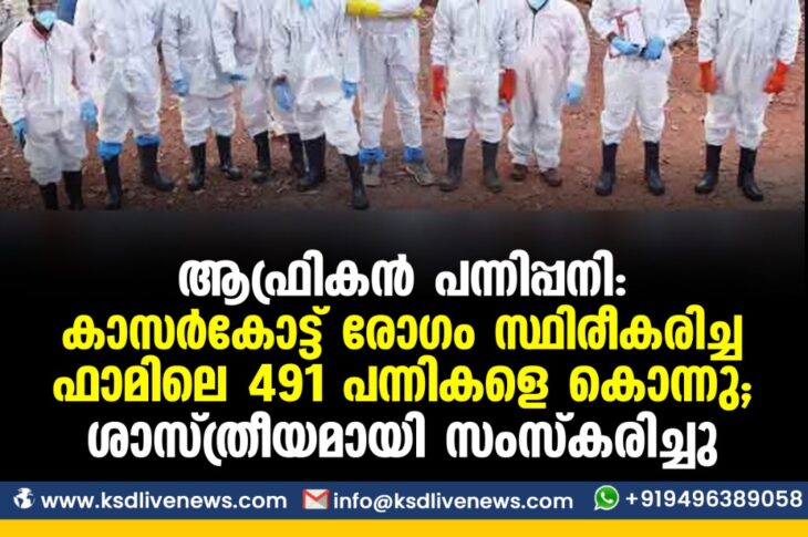 കാസർഗോഡ് ആഫ്രികന് പന്നിപ്പനി: കാസര്കോട്ട് രോഗം സ്ഥിരീകരിച്ച ഫാമിലെ 491 പന്നികളെ കൊന്നു; ശാസ്ത്രീയമായി സംസ്കരിച്ചുJanuary 14, 2023