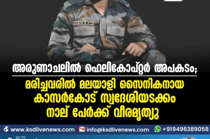 കാസർഗോഡ്ദേശീയം അരുണാചലില് ഹെലികോപ്റ്റര് അപകടം; മരിച്ചവരില് മലയാളി സൈനികനായ കാസർകോട് സ്വദേശിയടക്കം നാല് പേർക്ക് വീരമൃത്യുOctober 22, 2022