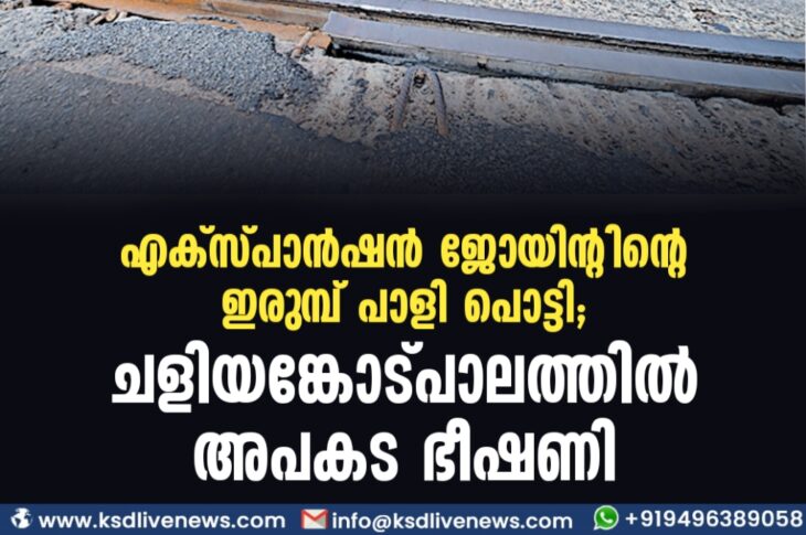 കാസർഗോഡ് എക്സ്പാൻഷൻ ജോയിന്റിന്റെ ഇരുമ്പ് പാളി പൊട്ടി ; ചളിയങ്കോട്പാലത്തിൽ അപകട ഭീഷണിSeptember 27, 2022