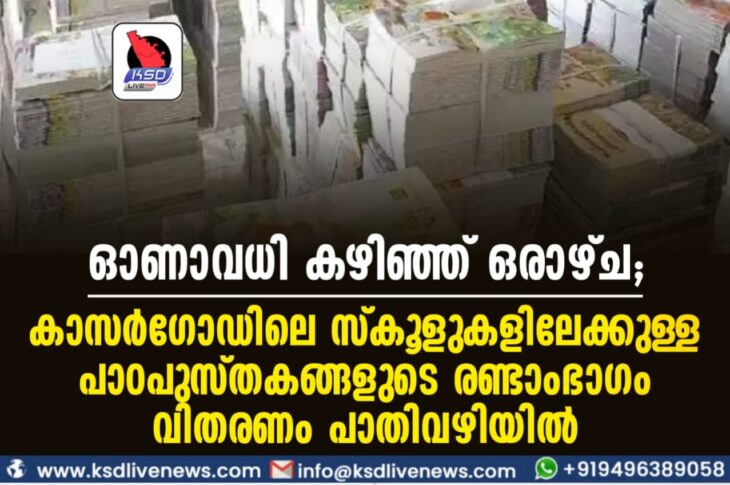 കാസർഗോഡ് ഓണാവധി കഴിഞ്ഞ് ഒരാഴ്ച; കാസര്ഗോഡിലെ സ്കൂളുകളിലേക്കുള്ള പാഠപുസ്തകങ്ങളുടെ രണ്ടാംഭാഗം വിതരണം പാതിവഴിയില്September 21, 2022
