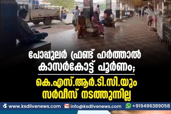 കാസർഗോഡ് പോപ്പുലർ ഫ്രണ്ട് ഹർത്താൽ കാസർകോട്ട് പൂർണം; കെഎസ്ആർടിസിയും സർവീസ് നടത്തുന്നില്ലSeptember 23, 2022
