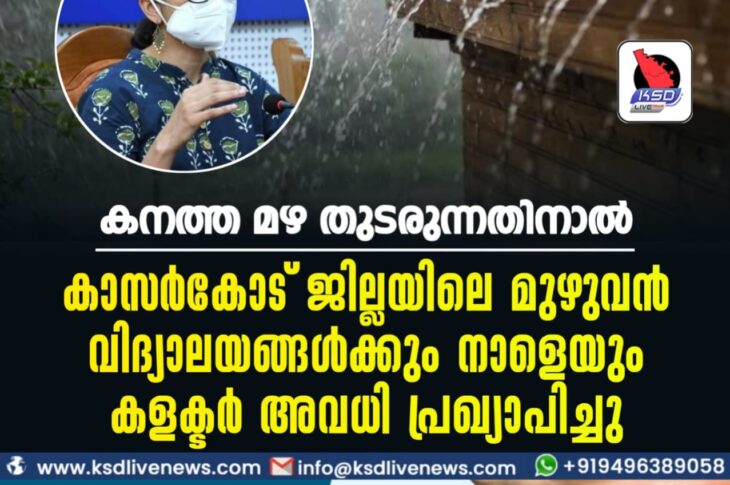 കാസർഗോഡ് കനത്ത മഴ തുടരുന്നതിനാൽ കാസർകോട് ജില്ലയിലെ മുഴുവൻ വിദ്യാലയങ്ങൾക്കും നാളെയും കളക്ടർ അവധി പ്രഖ്യാപിച്ചുJuly 7, 2022
