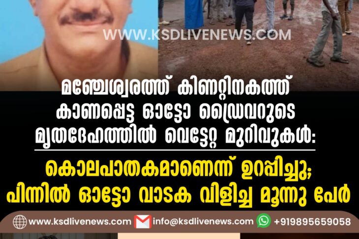 കാസർഗോഡ് മഞ്ചേശ്വരത്ത് കിണറ്റിനകത്ത് കാണപ്പെട്ട ഓട്ടോ ഡ്രൈവറുടെ മൃതദേഹത്തില് വെട്ടേറ്റ മുറിവുകള്; കൊലപാതകമാണെന്ന് ഉറപ്പിച്ചു, പിന്നില് ഓട്ടോ വാടക വിളിച്ച മൂന്നു പേര്April 11, 2025