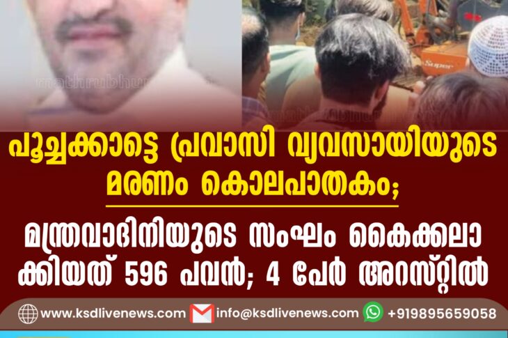 കാസർഗോഡ് പൂച്ചക്കാട്ടെ പ്രവാസി വ്യവസായിയുടെ മരണം കൊലപാതകം; മന്ത്രവാദിനിയുടെ സംഘം കൈക്കലാക്കിയത് 596 പവൻ; 4 പേർ അറസ്റ്റിൽDecember 5, 2024