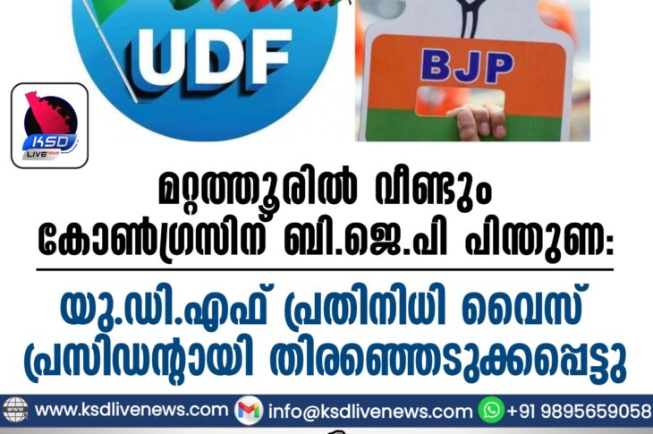 കേരളം മറ്റത്തൂരിൽ വീണ്ടും കോൺഗ്രസിന് ബി.ജെ.പി പിന്തുണ: യു.ഡി.എഫ് പ്രതിനിധി വൈസ് പ്രസിഡന്റായി തിരഞ്ഞെടുക്കപ്പെട്ടുJanuary 30, 2026