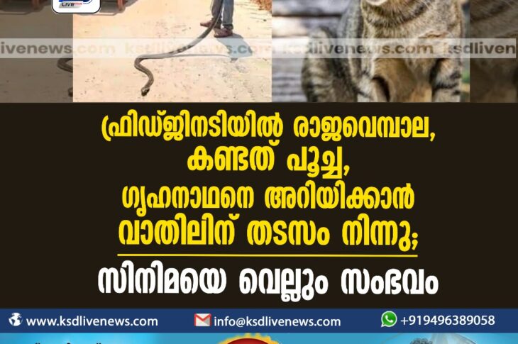 കേരളം ഫ്രിഡ്ജിനടിയില് രാജവെമ്പാല, കണ്ടത് പൂച്ച, ഗൃഹനാഥനെ അറിയിക്കാന് വാതിലിന് തടസം നിന്നു; സിനിമയെ വെല്ലും സംഭവംApril 1, 2024