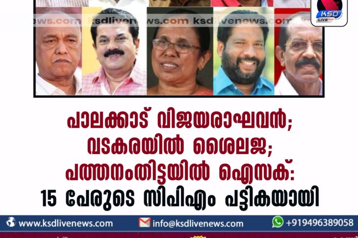 കേരളം പാലക്കാട് വിജയരാഘവന്, വടകരയില് ശൈലജ, പത്തനംതിട്ടയില് ഐസക്: 15 പേരുടെ സിപിഎം പട്ടികയായിFebruary 21, 2024