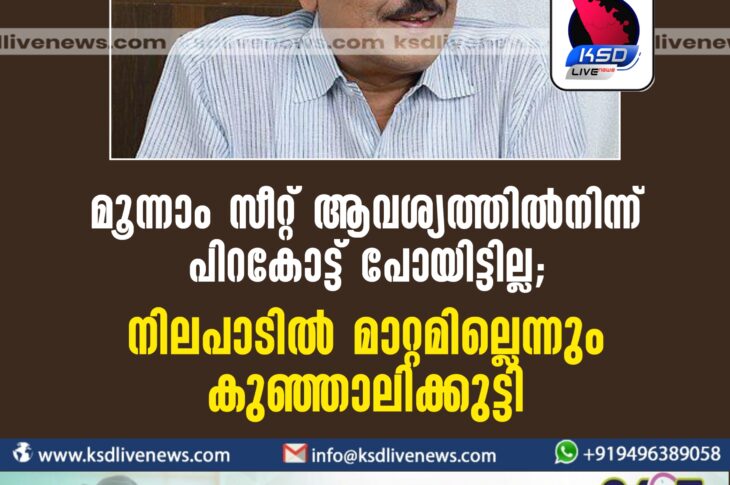 കേരളം മൂന്നാം സീറ്റ് ആവശ്യത്തിൽനിന്ന് പിറകോട്ട് പോയിട്ടില്ല; നിലപാടിൽ മാറ്റമില്ലെന്നും കുഞ്ഞാലിക്കുട്ടിFebruary 21, 2024