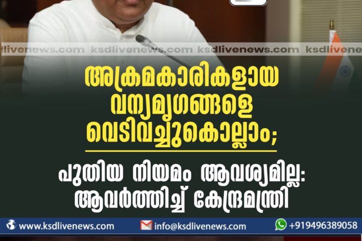 കേരളം അക്രമകാരികളായ വന്യമൃഗങ്ങളെ വെടിവച്ചുകൊല്ലാം; പുതിയ നിയമം ആവശ്യമില്ല: ആവർത്തിച്ച് കേന്ദ്രമന്ത്രിFebruary 22, 2024