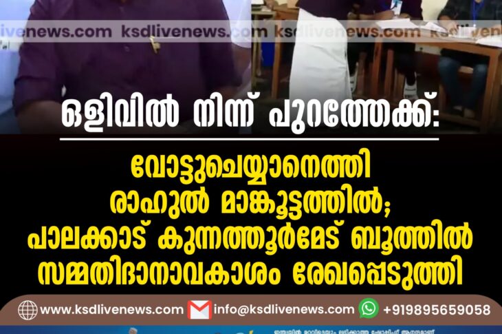 കേരളം ഒളിവില് നിന്ന് പുറത്തേക്ക്: വോട്ടുചെയ്യാനെത്തി രാഹുല് മാങ്കൂട്ടത്തില്, പാലക്കാട് കുന്നത്തൂര്മേട് ബൂത്തില് സമ്മതിദാനാവകാശം രേഖപ്പെടുത്തിDecember 11, 2025