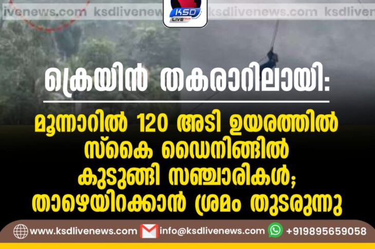 കേരളം ക്രെയിൻ തകരാറിലായി, മൂന്നാറിൽ 120 അടി ഉയരത്തിൽ സ്കൈ ഡൈനിങ്ങിൽ കുടുങ്ങി സഞ്ചാരികൾ; താഴെയിറക്കാൻ ശ്രമം തുടരുന്നുNovember 28, 2025