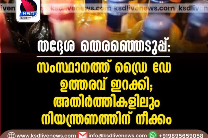 കേരളം തദ്ദേശ തെരഞ്ഞെടുപ്പ്: സംസ്ഥാനത്ത് ഡ്രൈ ഡേ ഉത്തരവ് ഇറക്കി; അതിര്ത്തികളിലും നിയന്ത്രണത്തിന് നീക്കംNovember 27, 2025