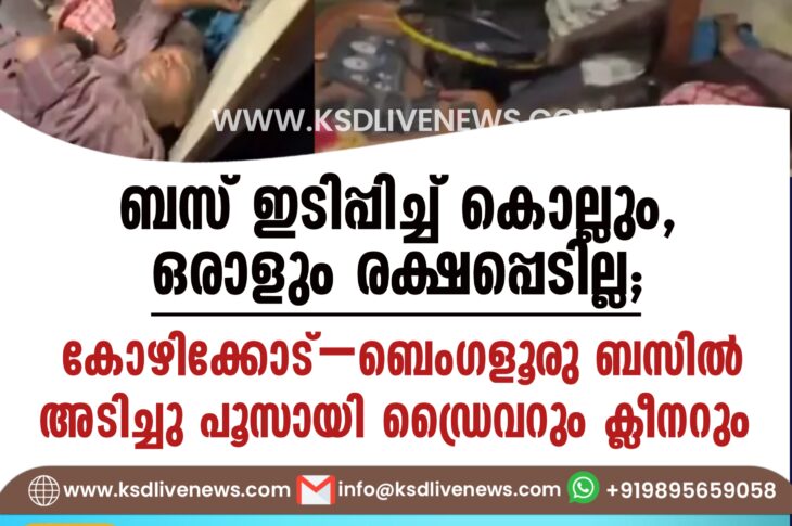കേരളം ബസ് ഇടിപ്പിച്ച് കൊല്ലും, ഒരാളും രക്ഷപ്പെടില്ല’; കോഴിക്കോട്–ബെംഗളൂരു ബസിൽ ‘അടിച്ചു പൂസായി’ ഡ്രൈവറും ക്ലീനറുംNovember 27, 2025